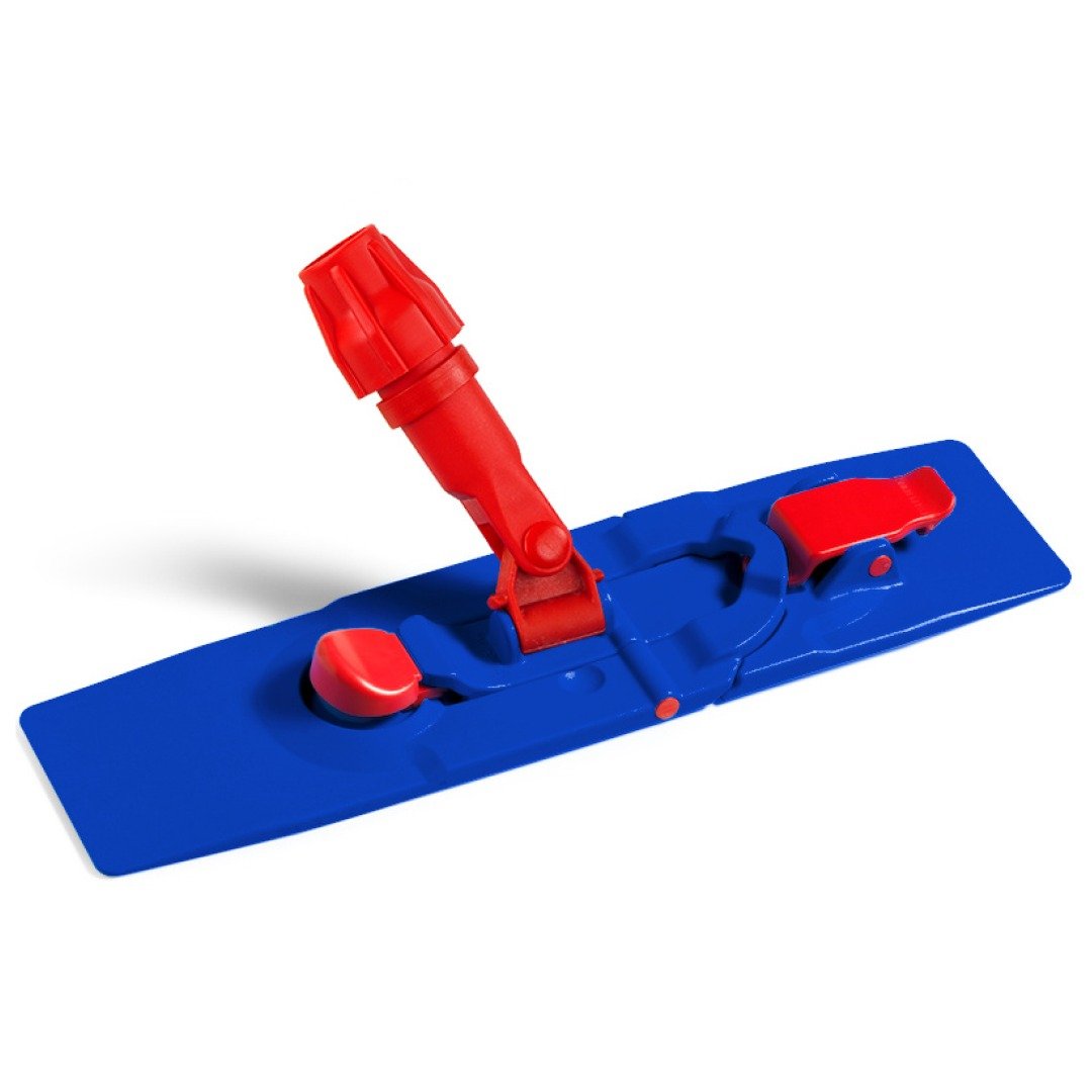 Držiak je vybavený automatickým systémom upevnenia hlavy mopu, vďaka špeciálnej upevňovacej svorke je hlava mopu pevne pripevnená k rámu. Vyrobený z recyklovateľného a nárazuvzdorného plastového materiálu, ľahký, praktický. Univerzálna skrutka, ktorá umožňuje použitie ľubovoľného druhu násad s priemerom od 20 do 24 mm. Otáčavý kĺb umožňuje 360 ° výkon